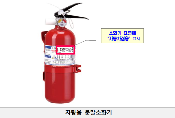 *차량용 소화기는 안전관리법 및 도로교통법에 따라 설치가 규정되어 있습니다.