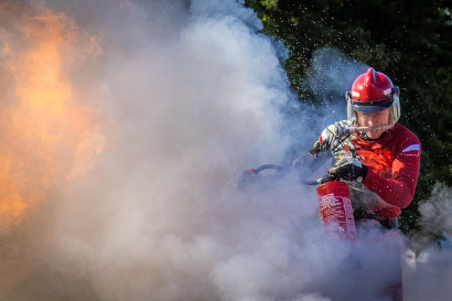 * 화재 발생 시 당황하지 않고 신속히 대응하려면 소화기 사용법을 미리 숙지해야 합니다. 기본 사용법은 "핀을 뽑고, 노즐을 화재 쪽으로 향한 뒤 손잡이를 누르며 분사하는 것"입니다.