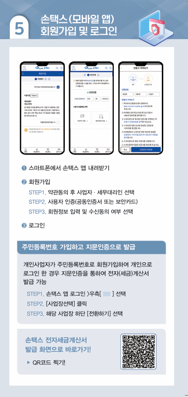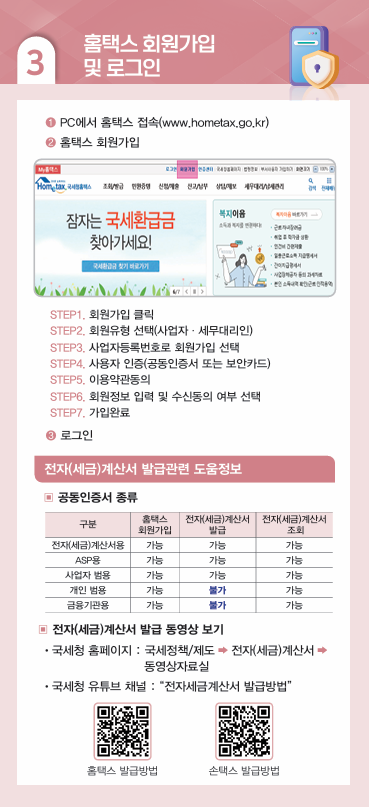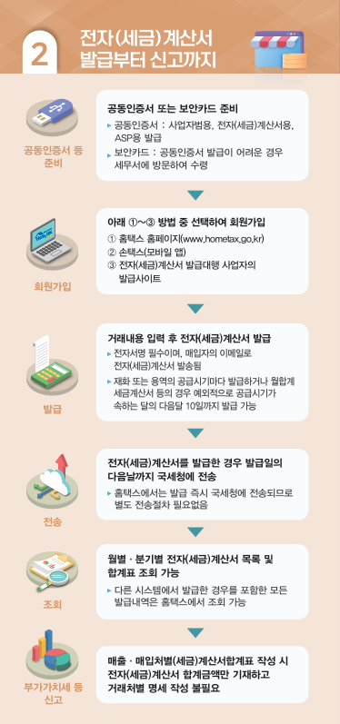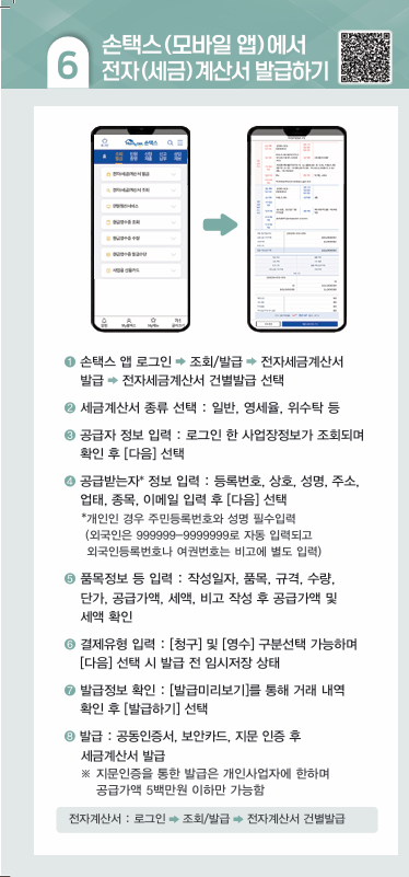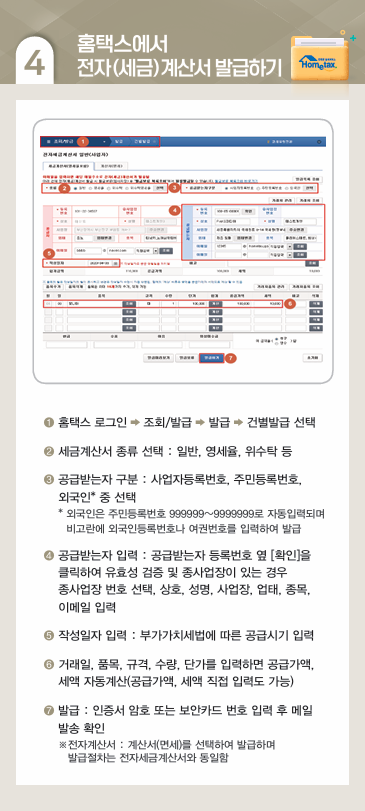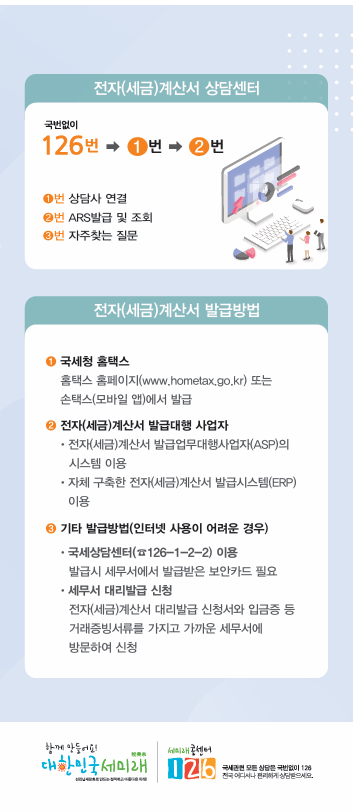 * 국세청 홈택스 또는 민간 전자세금계산서 발행 솔루션을 이용할 수 있습니다.