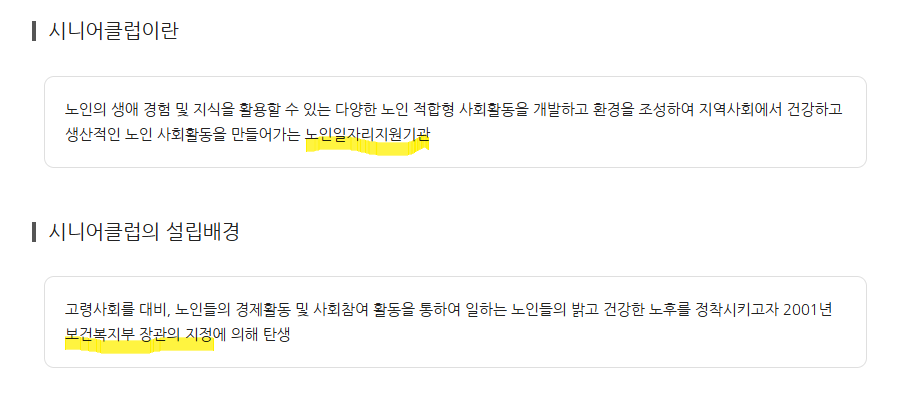 시니어클럽은 노인 일자리 창출을 목적으로 운영되는 기관으로, 전국 각 지역에 지점이 있어 다양한 일자리 및 사회활동 기회를 제공합니다. (광고)