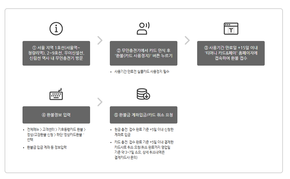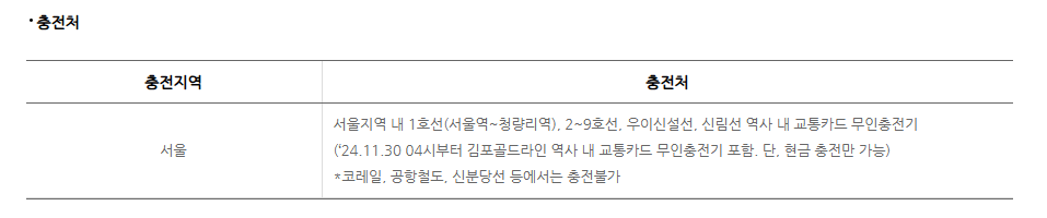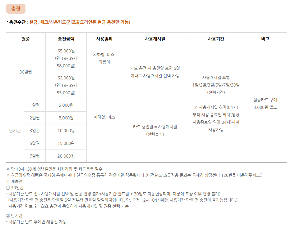 4. 재충전: 사용 기간 만료 5일 전부터 재충전이 가능하며, 만료일 이후 재충전 시 권종 변경이 가능합니다.