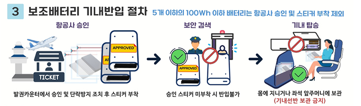 가장 큰 변화는 보조배터리의 수하물 위탁이 전면 금지된다는 점이다.