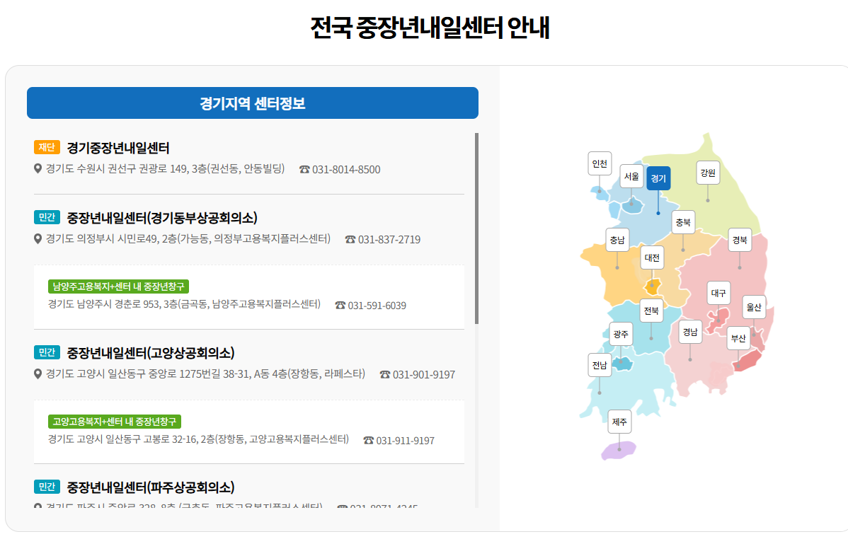 : 각 지자체에서 운영하는 중장년 경력 지원 프로그램을 확인하고 신청할 수 있습니다.