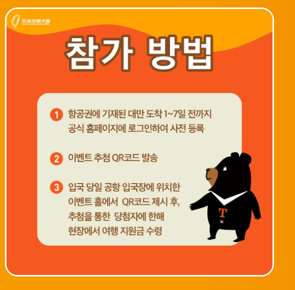 이벤트에 참여하려면 사전 등록을 해야 하며, 대만 도착 후 공항에서 추첨을 통해 당첨 여부를 확인할 수 있습니다.